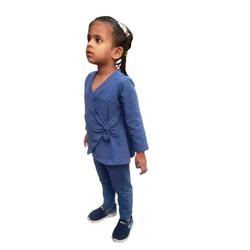 Set di felpe e Leggings Casual per ragazze su misura morbido tessuto di cotone con volant sulla vita e sulla caviglia abbinata al colore blu per la vendita