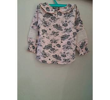Alta qualità elegante in cotone organico Lena pizzo stampato Top per ragazze Casual Party stile con volant collo e polso modello solido