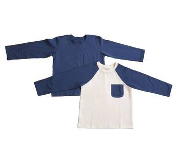 T-shirt in maglia di cotone più venduta con tasca anteriore a maniche lunghe e t-shirt frontale Casual a doppio colore con motivo Plaid